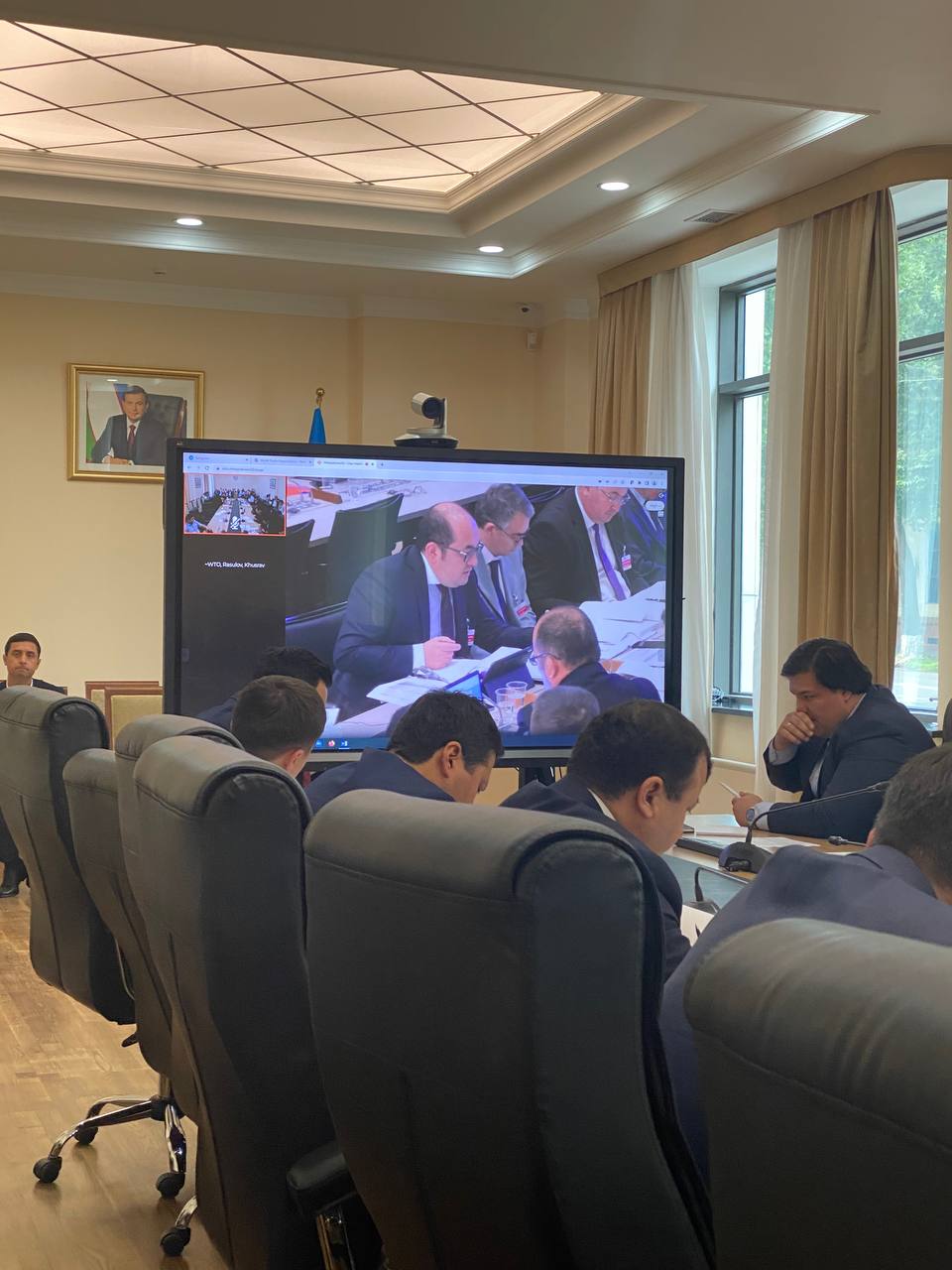 Investisiyalar va tashqi savdo vazirligi binosida bo’lib o’tgan O’zbekiston Respublikasining Jahon savdo tashkilotiga (JST) qo’shilishi bo’yicha Ishchi guruhning 5-yig’ilishini yuqori darajada o’tkazish maqsadida tashkil etiladigan shtab faoliyatiga Monopoliyaga qarshi kurashish qo’mitasi tomonidan jalb qilingan boshqarma boshlig’i Ulug’bek Fayazov, boshqarma boshlig’i o’rinbosari Baxodir YUsupjanov va mutaxassis Valentina Dubrovskaya ishtirok etdi.