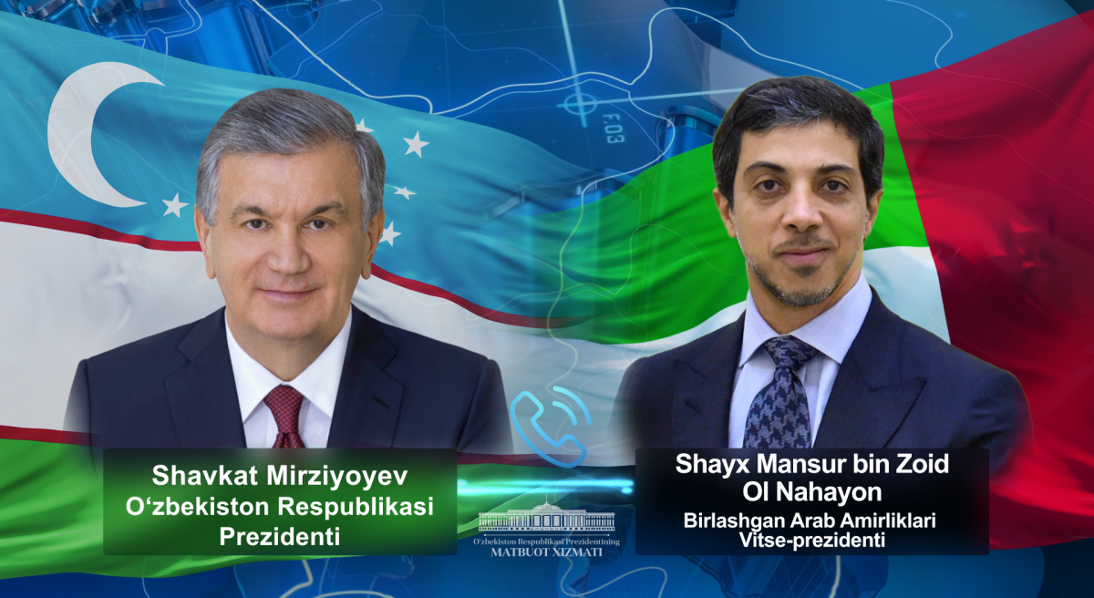 O‘zbekiston Respublikasi Prezidenti Shavkat Mirziyoyevning Birlashgan Arab Amirliklari Vitse-prezidenti shayx Mansur Ol Nahayon bilan telefon orqali muloqotida keng ko‘lamli hamkorlikni yanada rivojlantirish, Amirliklarning yetakchi kompaniyalari ishtirokida yirik investitsiya loyihalarini amalga oshirish masalalari muhokama qilindi.