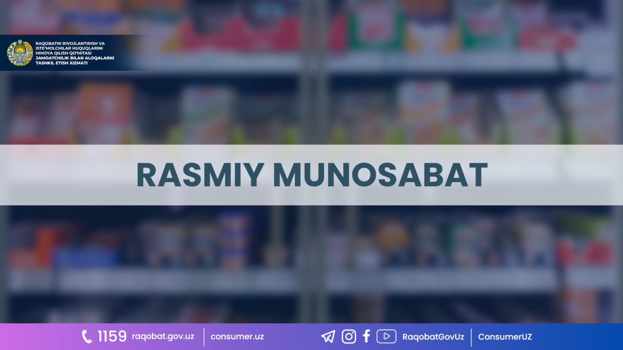Raqobatni rivojlantirish va iste’molchilar huquqlarini himoya qilish qo‘mitasi ushbu holat yuzasidan olib borilgan o‘rganishlar yuzasidan quyidagilarni ma’lum qiladi.