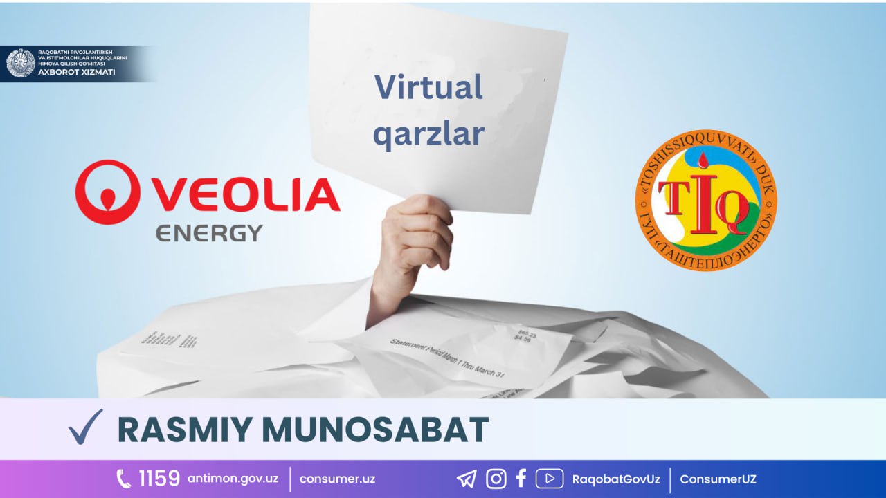Ijtimoiy tarmoqlar orqali Toshkent shahrida issiqlik ta’minoti xizmatlari ko‘rsatuvchi tashkilotlar tomonidan iste’molchilarga asossiz qarzdorliklar hisoblanganligi, “Veolia Energy Tashkent” MChJ va “Toshissiqquvvati” DUKlar yuqoridagi holatlar bo‘yicha sansalorlikka solayotganligi yuzasidan bildirilgan ma’lumotlar bo‘yicha Raqobatni rivojlantirish va iste’molchilar huquqlarini himoya qilish qo‘mitasi quyidagilarni ma’lum qiladi: