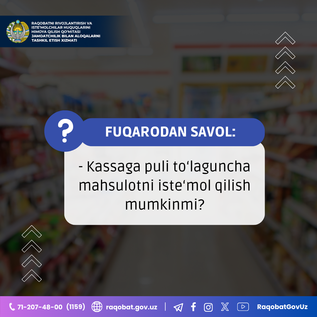 – Kassaga puli to‘laguncha mahsulotni iste‘mol qilish mumkinmi?