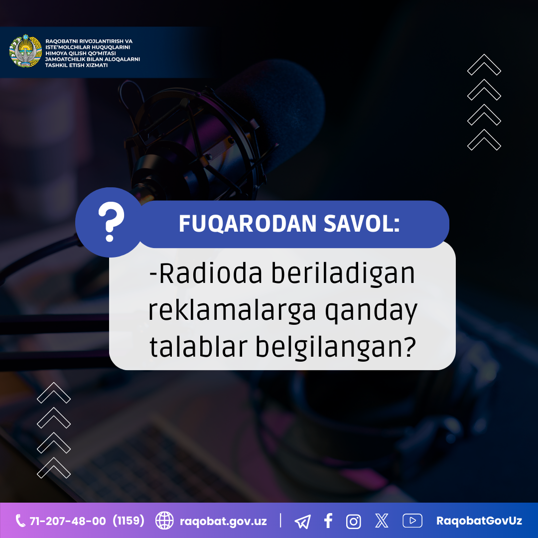 - Radioda beriladigan reklamalarga qanday talablar belgilangan?