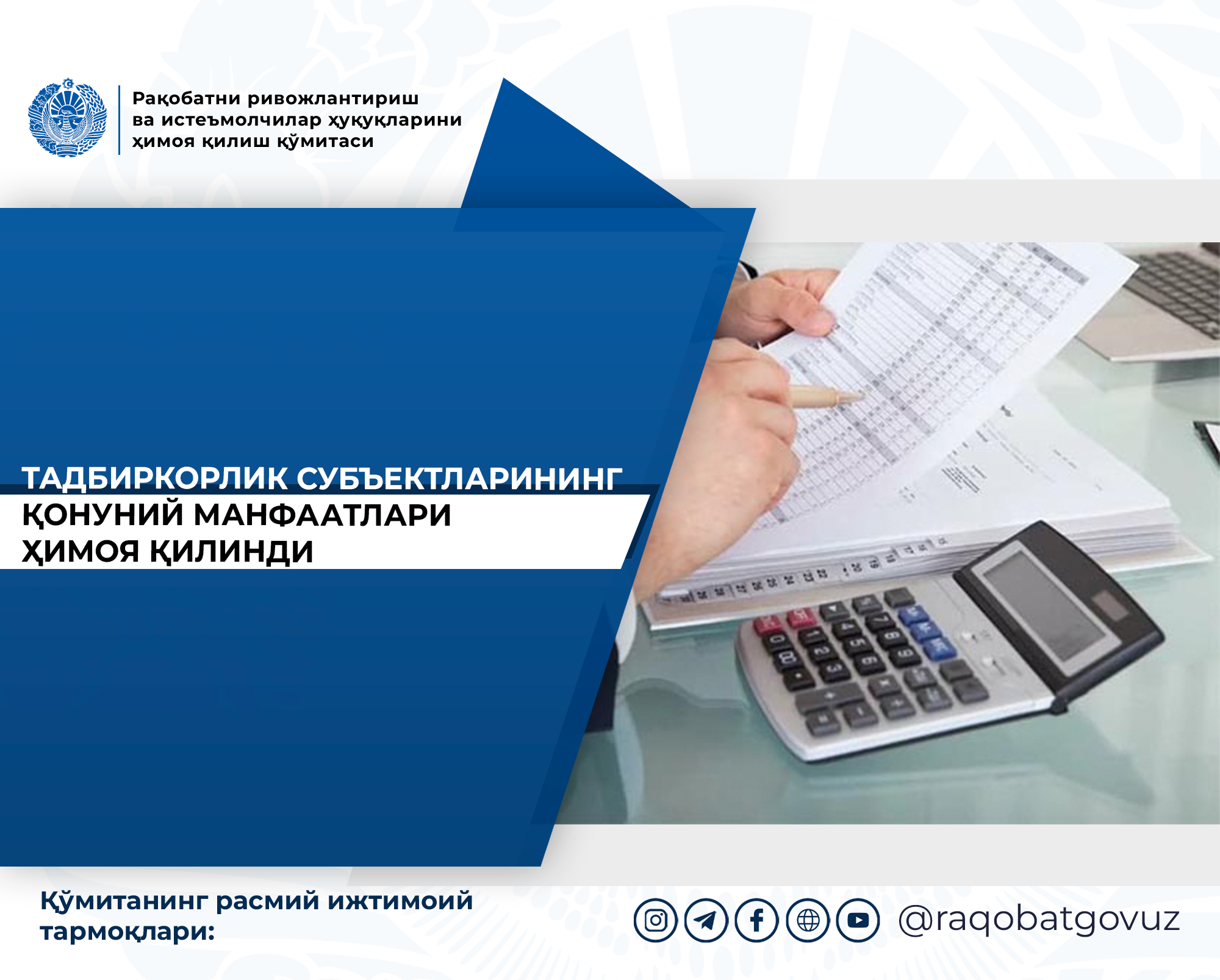 Qo‘mita tadbirkorlik subyektlarining qonuniy huquq va manfaatlarini himoya qilish, bozorlarda adolatli raqobat muhitini ta’minlash yo‘lida tizimli ishlarini davom ettirmoqda.