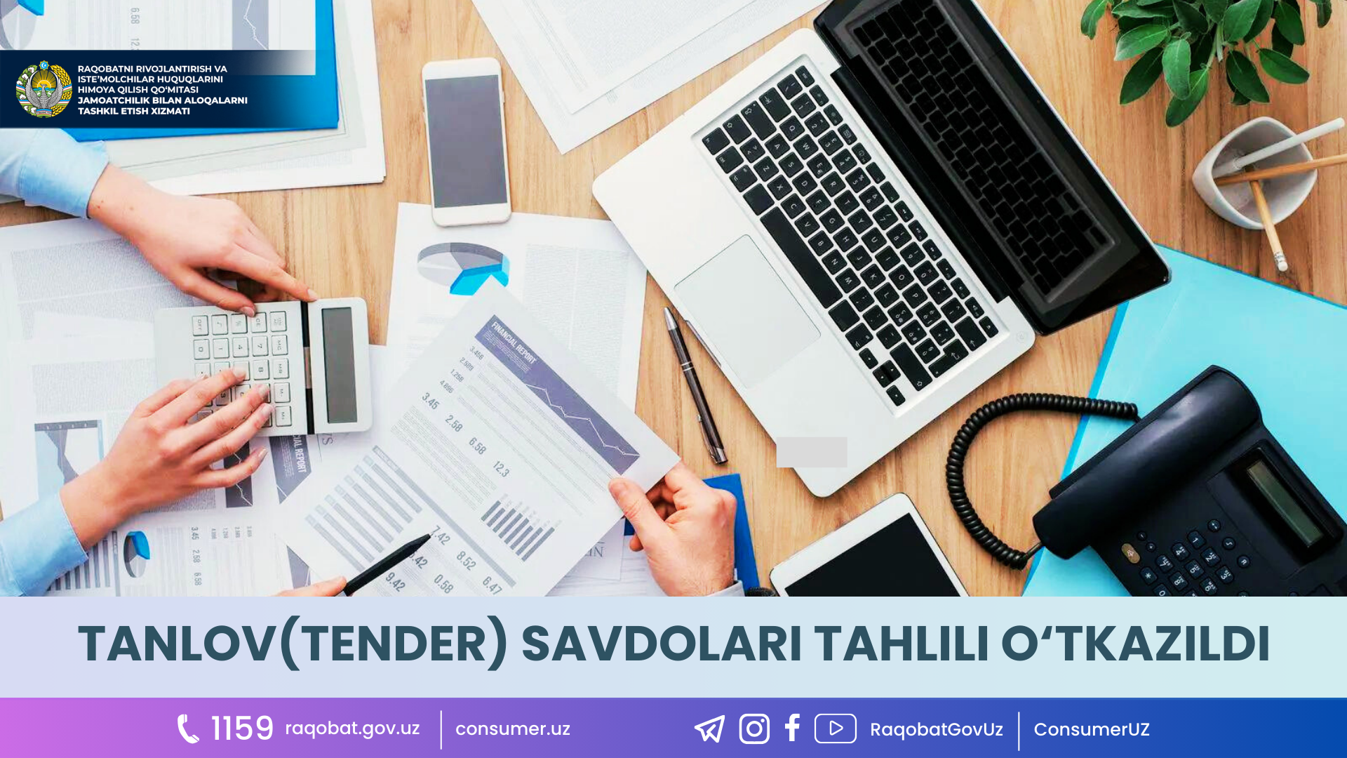 O‘rganilgan tanlov (tender) savdolari tahlili natijasida buyurtmachilar tomonidan 12 ta xarid savdolari jarayonida 12 ta raqobatga zid holatlar aniqlangan.