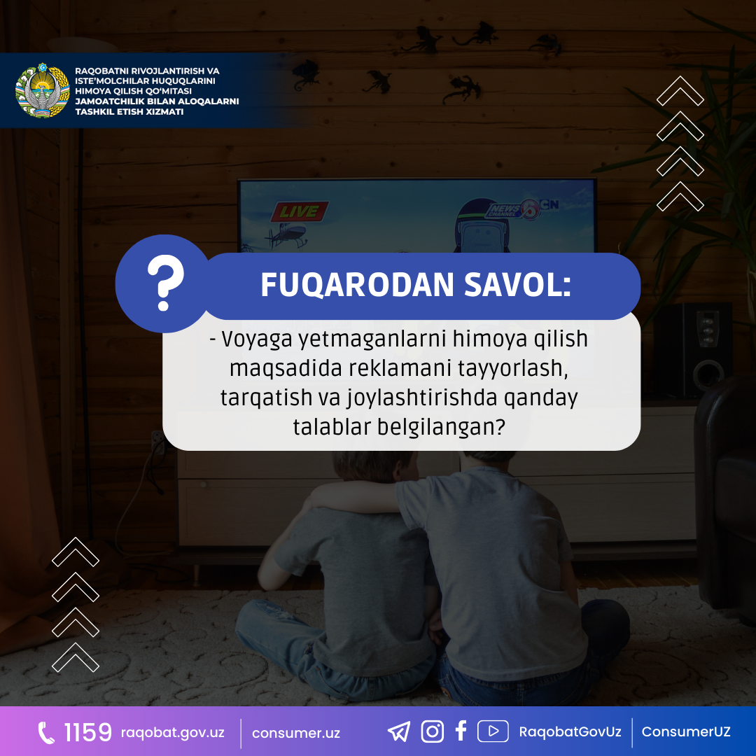 – Voyaga yetmaganlarni himoya qilish maqsadida reklamani tayyorlash, tarqatish va joylashtirishda qanday talablar belgilangan?